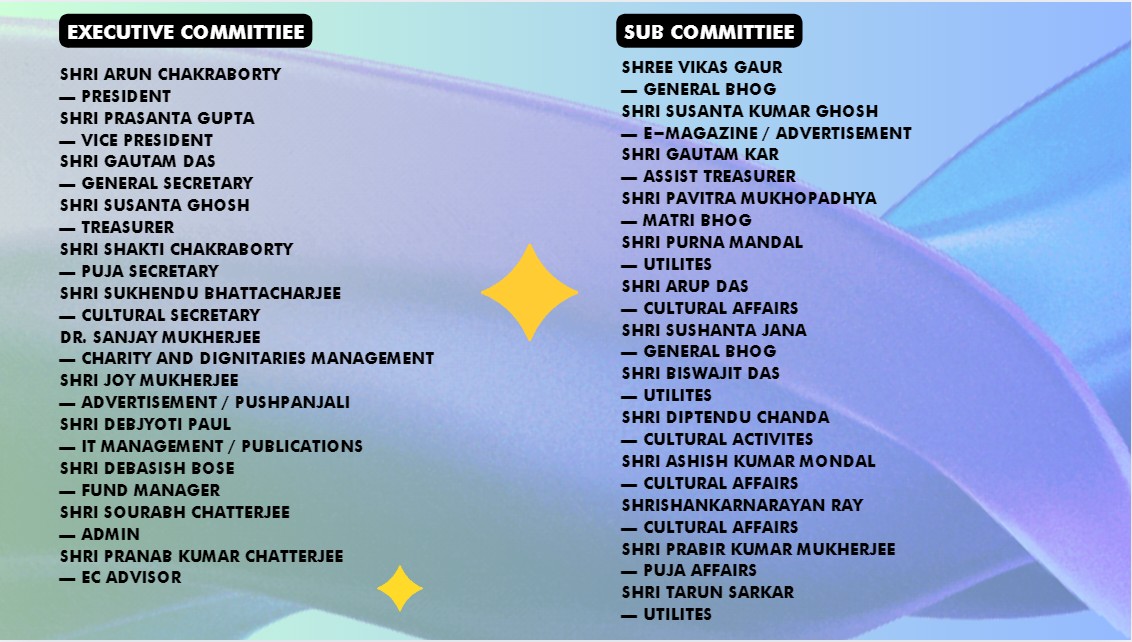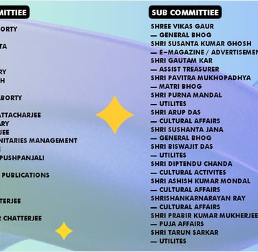 In this year 2025, we are celebrating 42 years of continuous services to all. Maintaining the culture for every ones growth and infinite helping hands. This year we are celebrating durga puja from 28th September to 02nd October 2025 at Nizampura Atithi Graha, Nizampura.